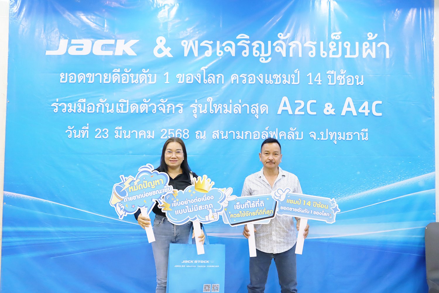 ภาพบรรยากาศภายในงาน JACK & พรเจริญจักรเย็บผ้า เปิดตัวจักรรุ่นใหม่ล่าสุด A2C & A4C ในวันที่ 23 มีนาคม 2568 ณ ไพน์เฮิร์สท กอล์ฟ คลับ แอนด์ โฮเทล อ.คลองหลวง จ.ปทุมธานี