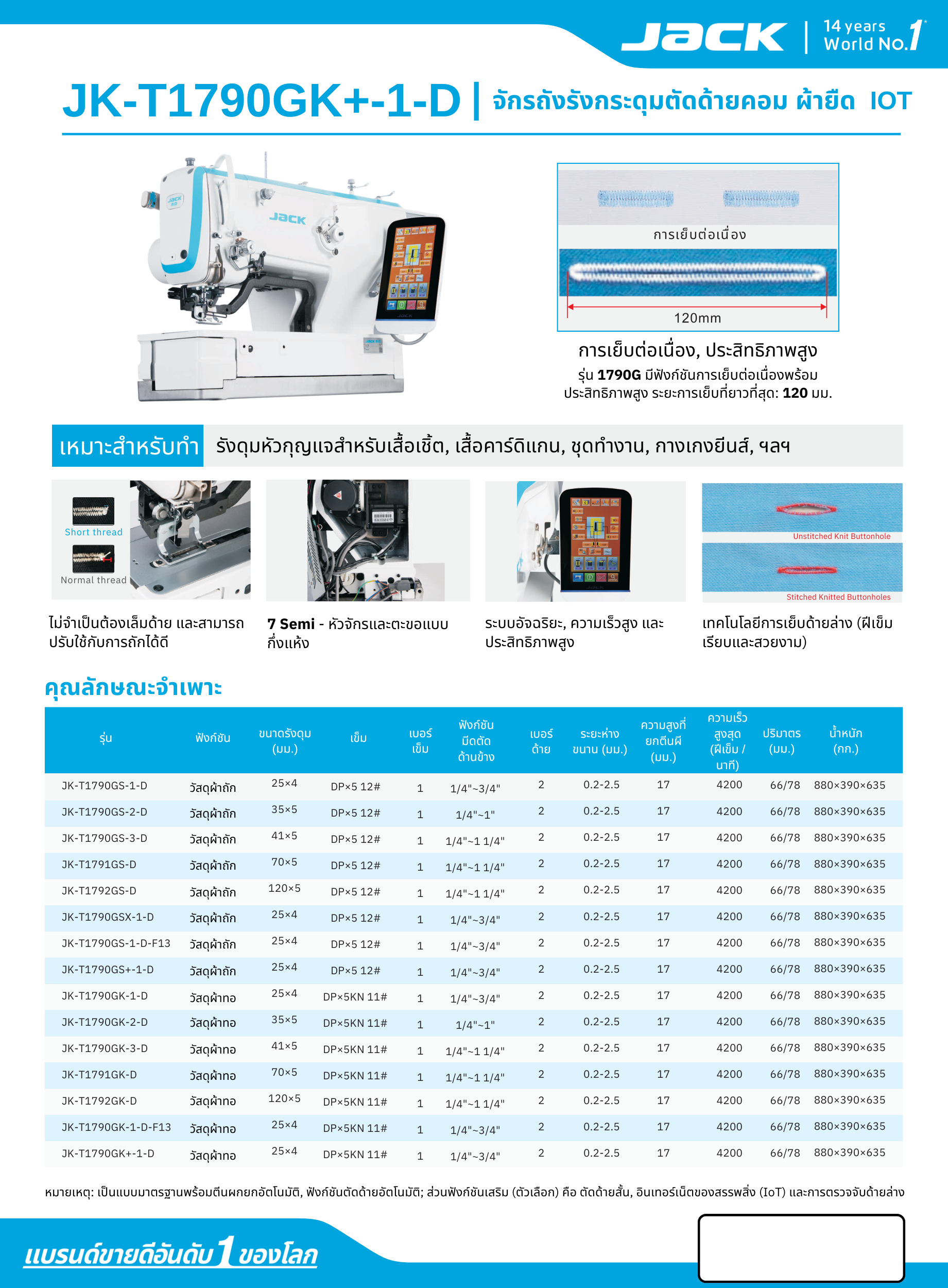 จักรถักรังกระดุมตัดด้ายคอม ผ้ายืด ระบบ IOT JACK รุ่น JK-T1790GK+-1-D