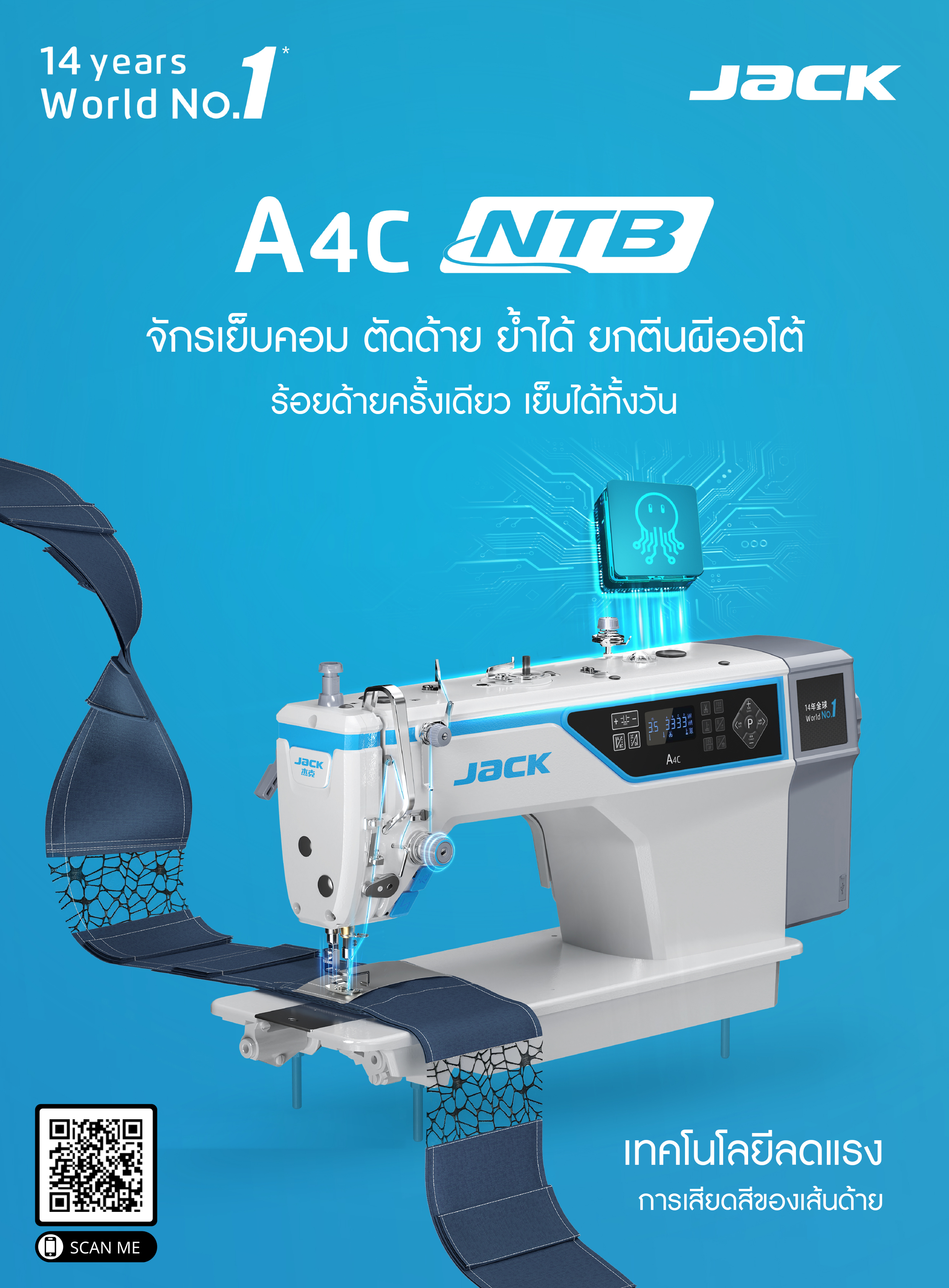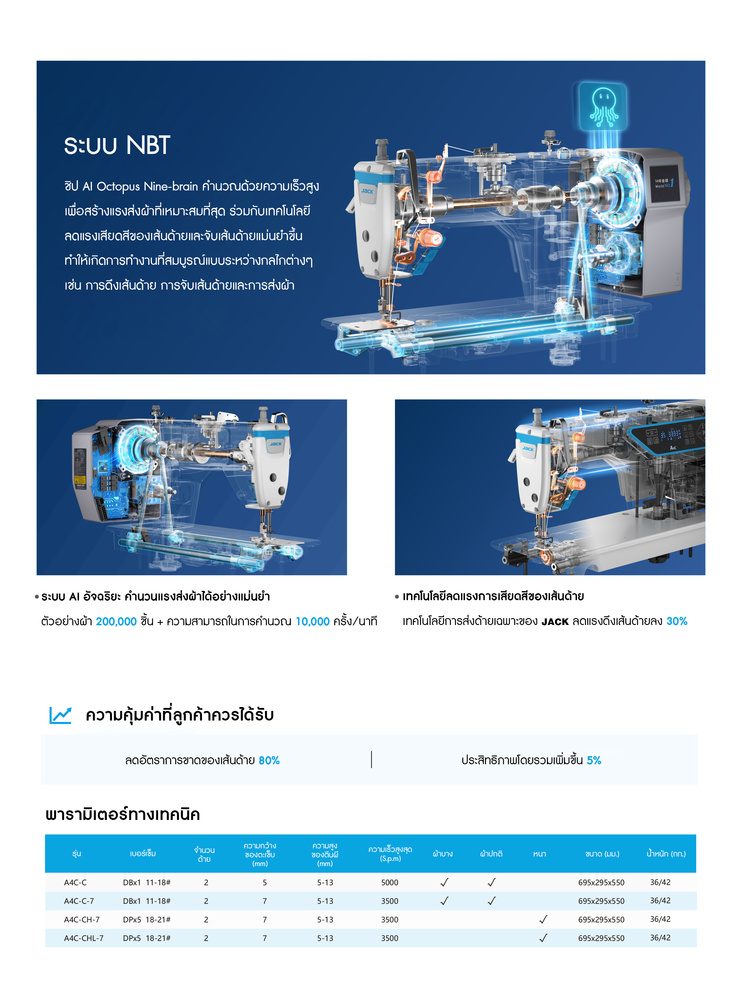 จักรเย็บเข็มเดี่ยวตัดด้ายคอม ยกตีนผีออโต้ (ผ้าหนา 7mm.) JACK รุ่น A4B-A-CHL-7