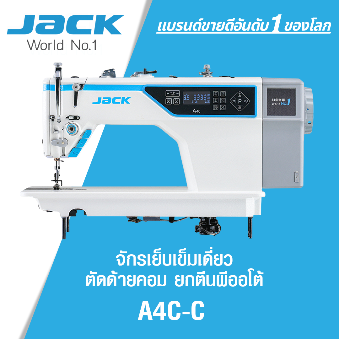 จักรเย็บเข็มเดี่ยวตัดด้ายคอม ยกตีนผีออโต้ JACK รุ่น A4C-C