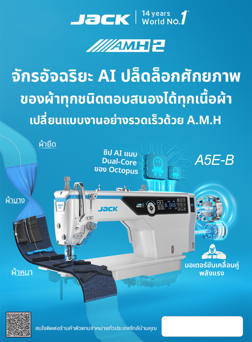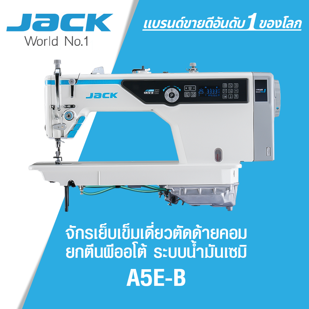 จักรเย็บเข็มเดี่ยวตัดด้ายคอม ยกตีนผีออโต้ ระบบน้ำมันเซมิ JACK รุ่น A5E-B