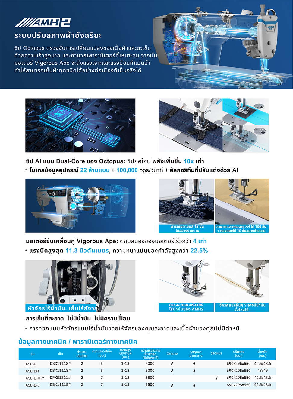 จักรเย็บเข็มเดี่ยวตัดด้ายคอม ยกตีนผีออโต้ ระบบน้ำมันเซมิ IOT JACK รุ่น A5E+-B