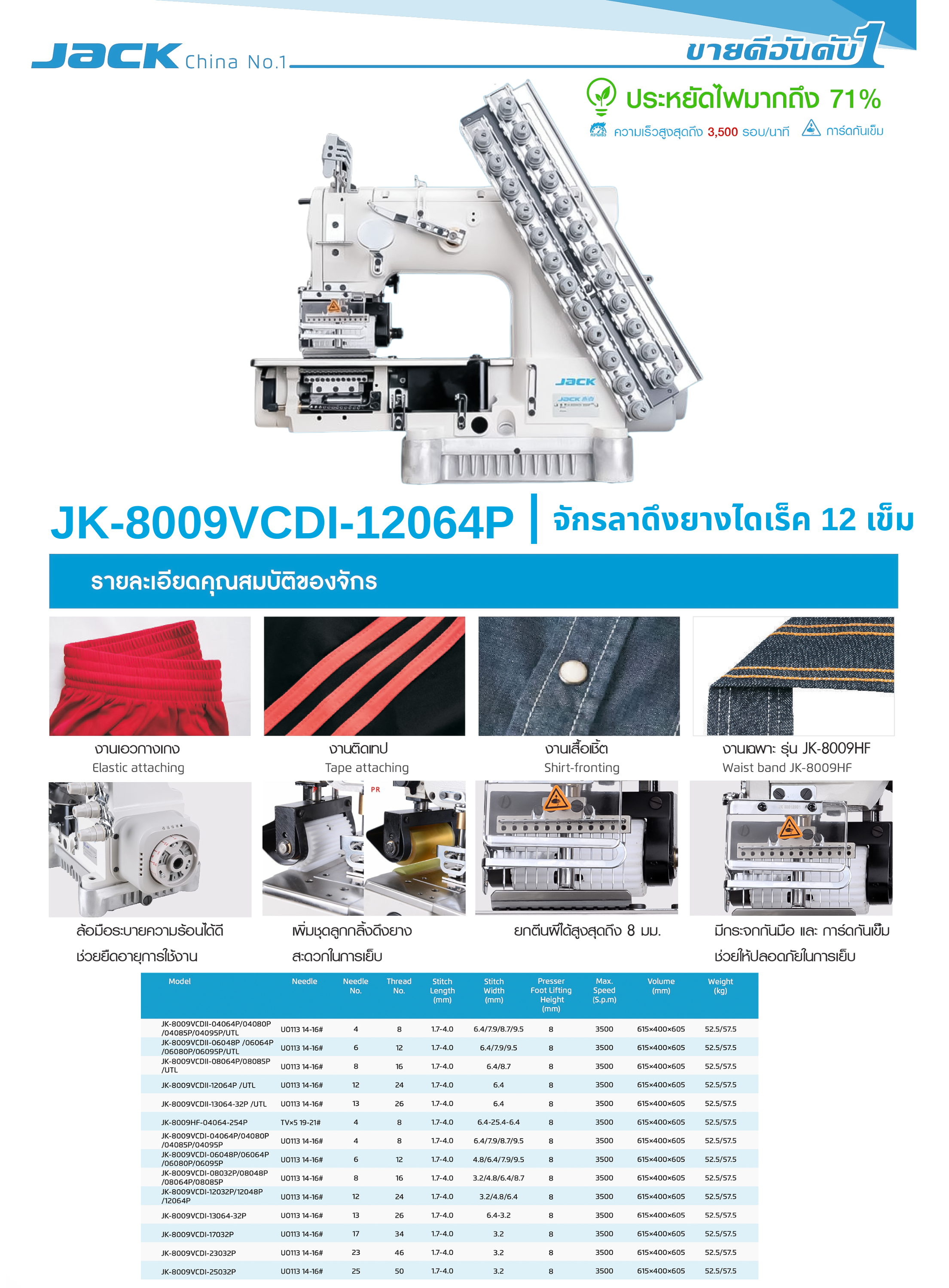 จักรลาดึงยางไดเร็ค 12 เข็ม JACK รุ่น JK-8009VCDI-12064P