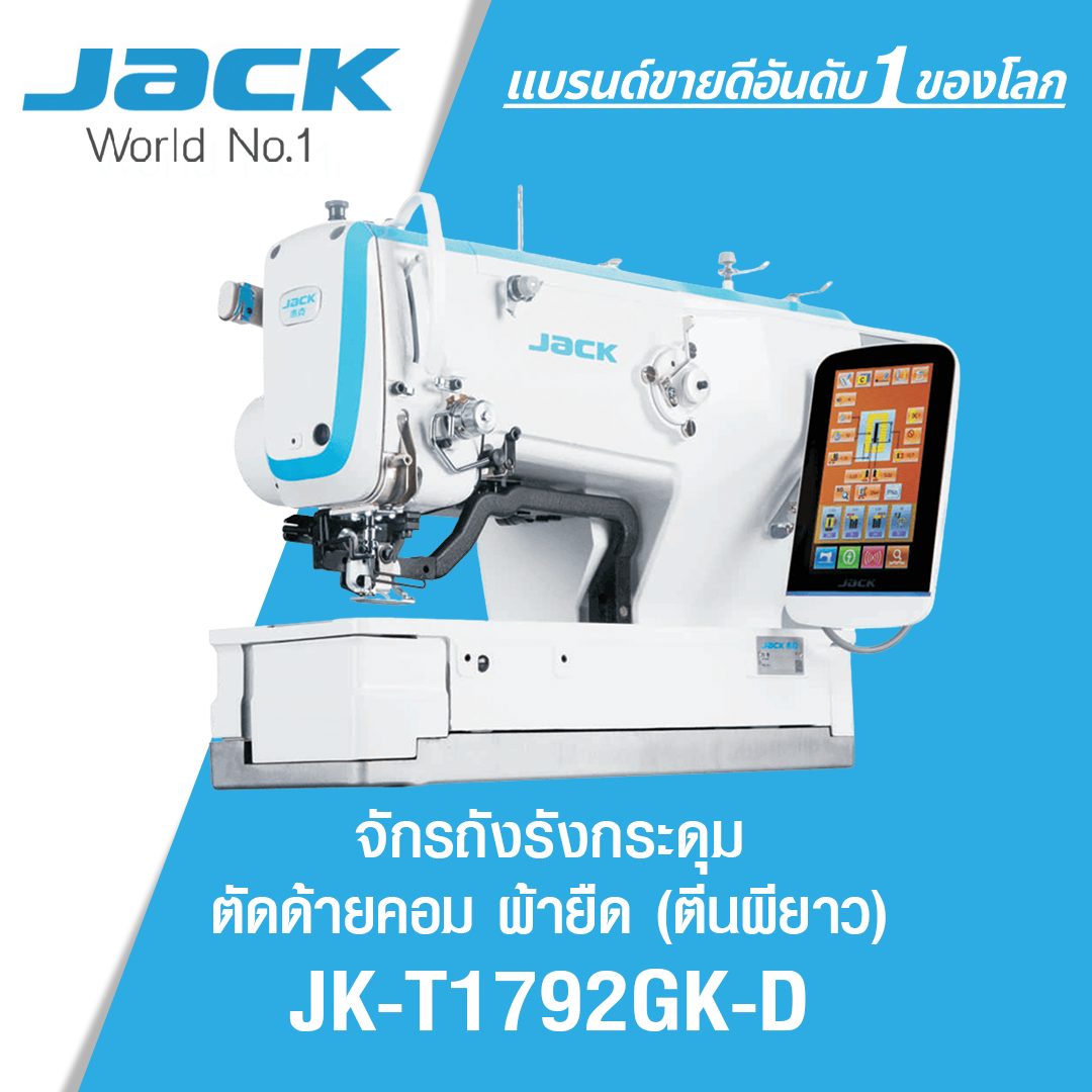จักรถักรังกระดุมตัดด้ายคอม ผ้ายืด (ตีนผียาว) JACK รุ่น JK-T1792GK-D